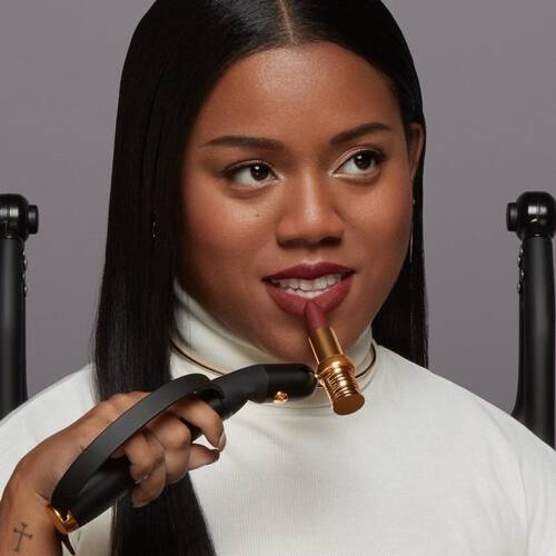 Appliquez votre rouge à lèvres. HAPTA contrebalancera tout mouvement involontaire et maintiendra votre produit au même niveau.